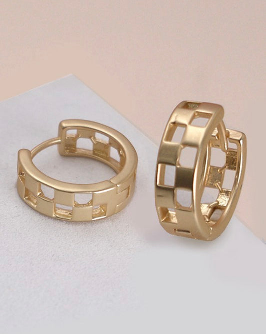 Mini Checkered Cutout Tarnish Free Hoop Huggie Earrings