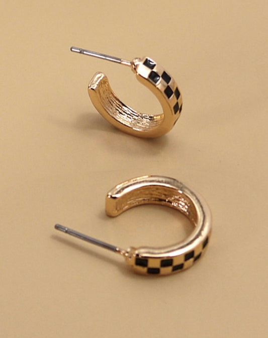 Mini Checkered Hoop Earrings-Tarnish Free