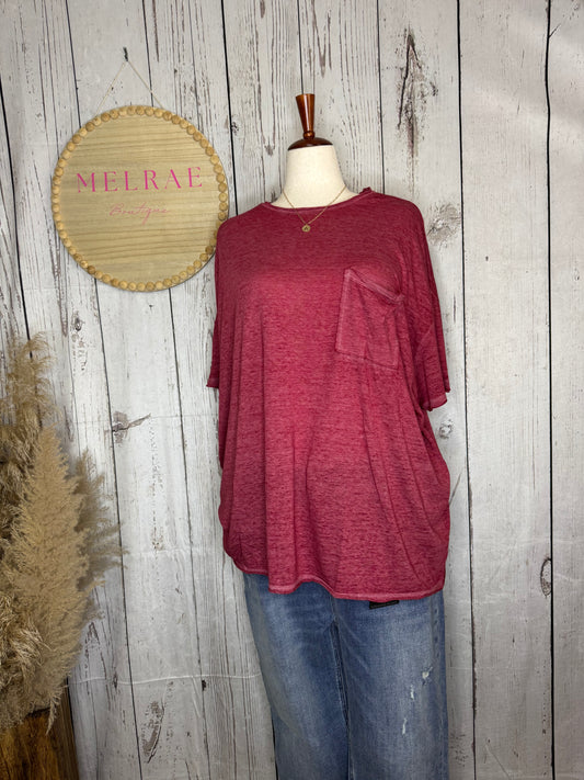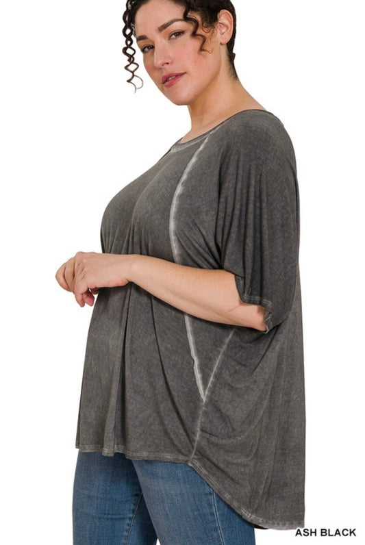 TONYA Plus Washed Dolman Sleeve Boat Neck Top