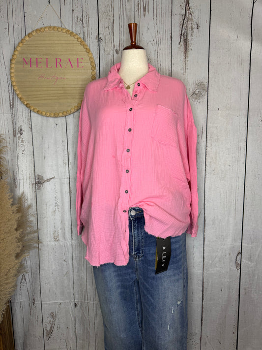 Vallie Plus Double Gauze Oversized Raw Edge Shirt