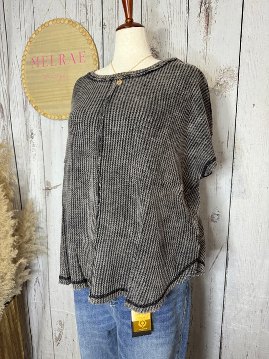CONNIE Plus Washed Waffle Short Sleeve Top