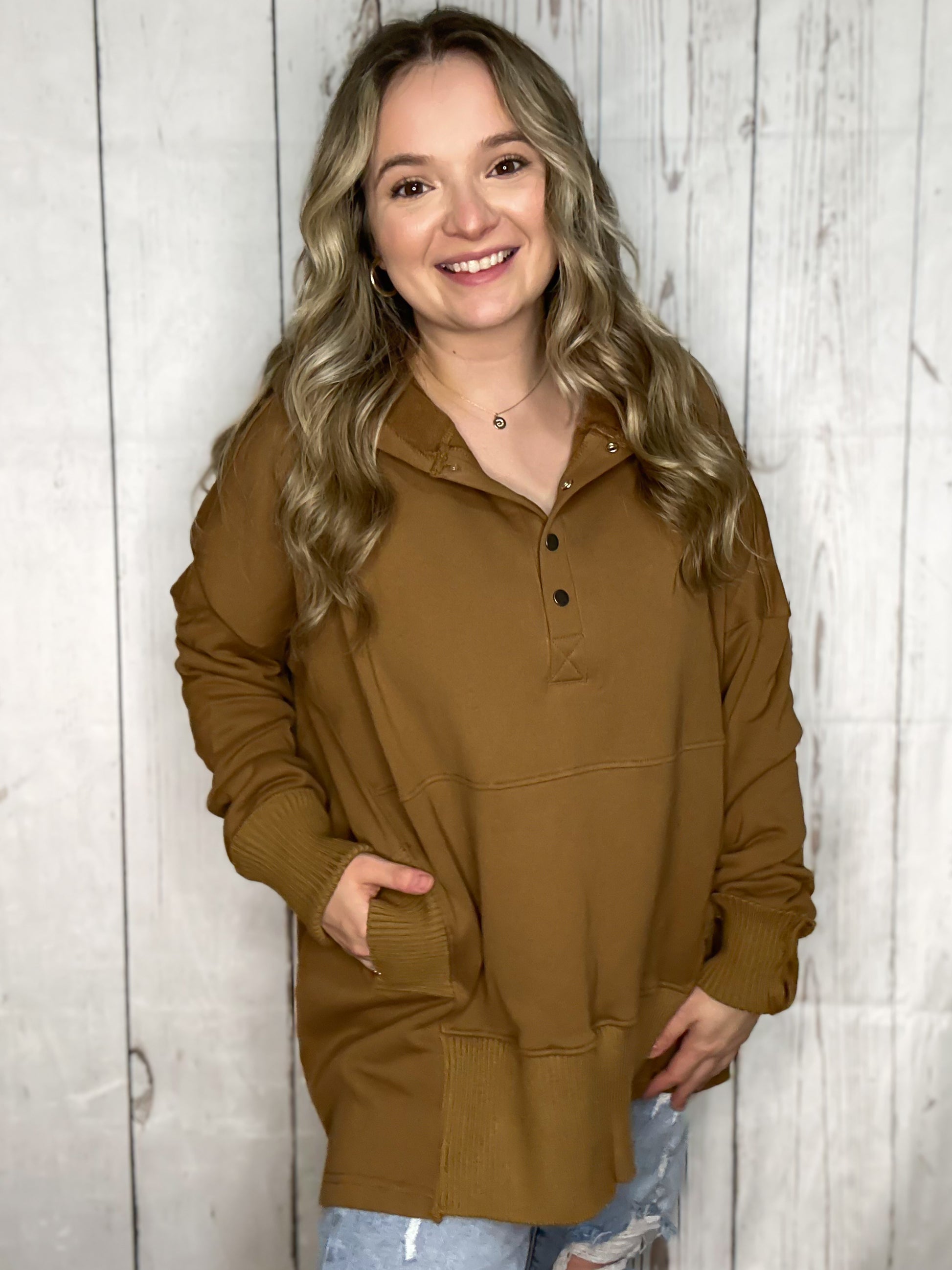 This Nova Sweatshirt will become your go-to for all your cozy needs! With a classic button opening, it's perfect for keeping you warm on cold days. Plus, with its stylish design, you can look cool while you stay comfy. What's not to love?
